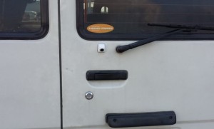 どれくらいまで見えているのかを把握するためにスプレー缶を車両のすぐ後ろに置いてみた。