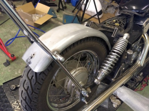穴あけ済ませたらすぐに塗装に出す予定だったのがサドルバッグサポートが決まるまで全く作業が進まなくなってしまった(;^_^A