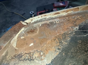 猫をいっぱい飼っているお宅で使われていた車両なので車両の隙間に大量の猫の毛が溜まっていて、それが湿気を吸ってしまったため燃料タンクが外側から腐食してしまっています。