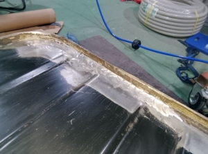 タンク下面のゴムがテープで止めされていたので粘着つきゴムシートを貼り付け。