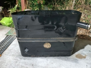 まだ漏れるようなら一度塗装全面剥離して錆で凸凹になってる面全てハンダで埋めて綺麗に補修しても良いかも?