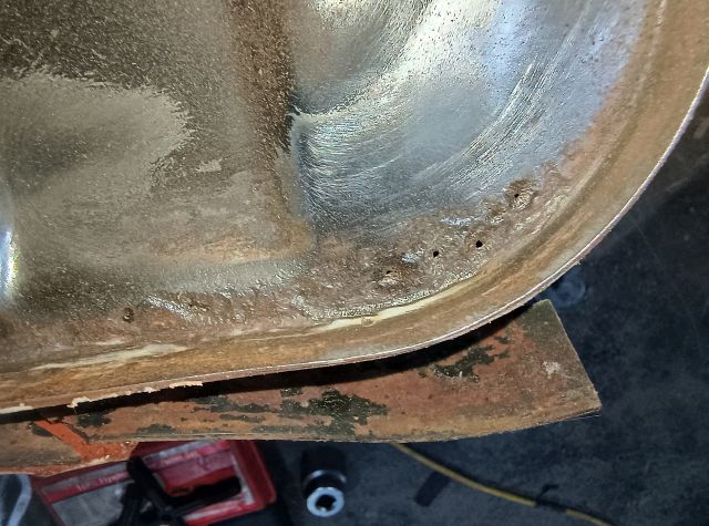 まぁまぁ穴はあるけれどボロボロと崩れ落ちるタイプの錆ではないので外からハンダで補修!