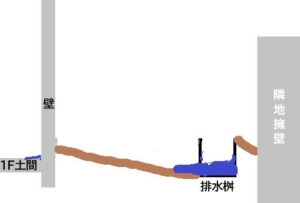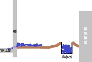 どうやら外に水が貯まると基礎の隙間から侵入してくるらしい。